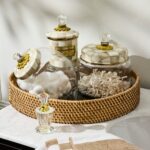 Serve in style with our Wild Rose Brown Enamel & Rattan Round Serving Tray, a perfect blend of elegance and practicality. The warm floral pattern is beautifully paired with the rich texture of rattan, creating a striking contrast that’s both chic and functional. Ideal for entertaining in style or elevating any tablescape, this tray brings color and charm to the home.