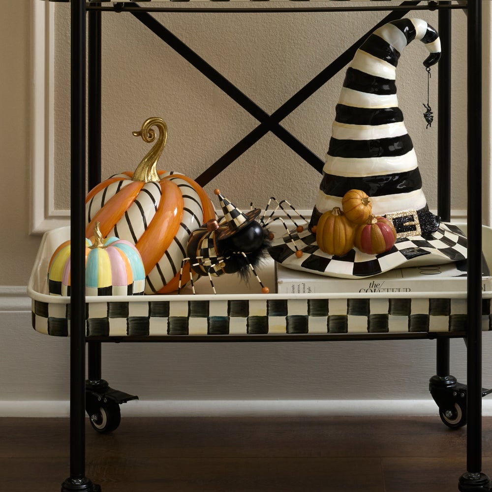 Spin a web of style with this tin spider, featuring hand-painted Courtly patterns and trimmed with feathers.