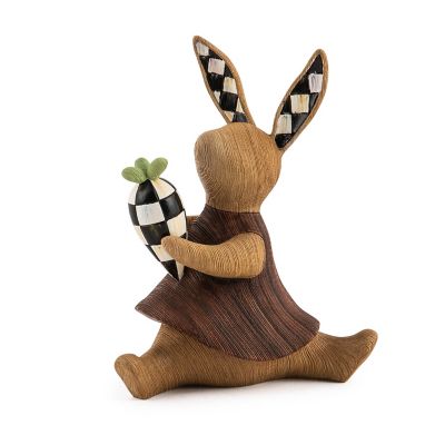 Discover the beauty of natural and neutral with this wood-finish rabbit holding a Courtly Check® carrot that’s decorated with more checks on its ears.